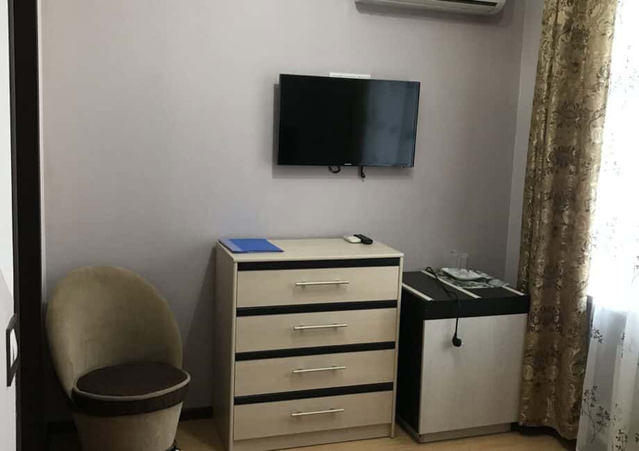 - Удобства: Cейф, Wi-Fi, Бесплатная парковка, Ванная комната, Душевая кабина, Кондиционер, Телевизор, Фен, Холодильник
