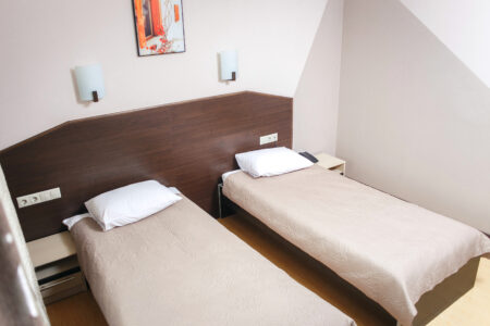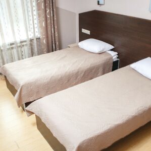 Комфортный номер с двумя отдельно стоящими кроватями — отличный вариант для размещения двух человек, прибывших с деловой поездкой или друзей, путешествующих вдвоем.